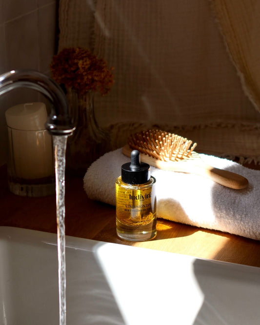 Un élixir précieux aux 10 huiles naturelles, conçu pour sublimer vos cheveux. Sa formule pure, sans silicones ni pétrochimie, nourrit, renforce et stimule leur croissance.